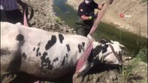 Ağrıda bataklığa saplanan inekler itfaiye ekipleri tarafından kurtarıldı