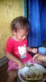 si meca lagi belajar makan sendiri