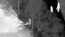 Police drone footage has captured the moment a ‘half-naked’ man in his dressing gown jumped over garden fences to run from officers at his front door.