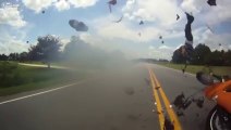 Ağır çekim Motosiklet Kazası-Adam metrelerce fırlıyor