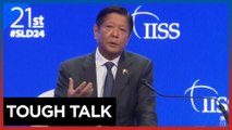 President Ferdinand Marcos Jr. delivers his keynote speech at the IISS Shangr-la Dialogue in Singapore on May 31, 2024 where he discussed, among others the Philippines' ongoing dispute with China, Asean centrality, the 'seven realities' in dealing with the conflict and what action his government would take if a Filipino dies during one of the China Coast Guard's incursions.