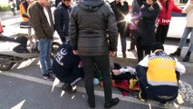 Motosikletiyle çarptığı yaşlı kadını ambulansa taşıdı