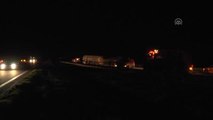 Adana'da akaryakıt yüklü TIR'ın karpuz yüklü TIR'a çarpması sonucu çıkan yangın söndürülmeye çalışılıyor.