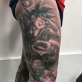 Hombre con las piernas tatuadas de Dragon Ball.....