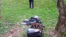 2.4.2016 : La minette visiteuse inspecte la station de base de la tondeuse robot
