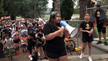 Around a thousand march in Invasion Day rally in Canberra, protesting at Parliament House