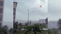 Manisa'nın Akhisar ilçesinde bugün saat 15.00 sıralarında başlayan gök gürültülü şiddetli yağışla birlikte bir apartmanın çatısına yıldırım düştü. Çatı kısmının büyük hasar aldığı binada can kaybı veya yaralanma olmaması tek teselli oldu.