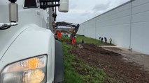 무너진 제방 사이로 덤프트럭을 통째로 빠뜨립니다.