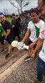 Nikolas Ferreira chuta boneco de Lula durante caminhada: “É pelo Brasil”