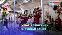 Dalam video yang viral tersebut, tampak pengantin dan keluarganya harus menerjang banjir setinggi 80 sentimeter.