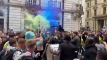 Leeds fans celebrate with street band on Park Row