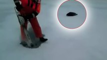 Un homme creuse un trou dans la glace, et sauve la vie d'un phoque