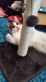 Night Fury, the adopted kitten, loved to play with toys. He enjoyed trying to take out a ball from the circle in the toy.