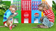 Monkey Baby Bon Bon eat jelly fruit ice cream Funny Animals Video