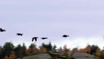 Greylag Geese are clever birds. They stick together in big groups and take turns keeping watch for danger. When it's time to have babies, they make nests on the ground near water. The mum lays about 5 to 6 eggs and sits on them for a month until they hatch.