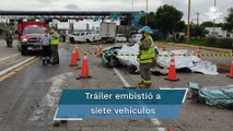 Captan momento exacto en el que tráiler embiste a varios autos en la autopista Siglo XXI