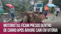 Motoristas ficam presos dentro de carro após árvore cair em Vitória