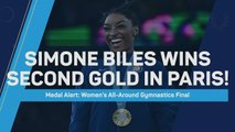 Simone Biles lands her signature ‘Biles II’ on the vault to win a third Olympic gold medal of Paris 2024.