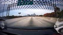 This truck was seen hanging half down from the highway. The truck tipped over to avoid colliding with a car that was stopped for hitting a deer on the highway.