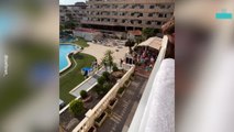 Shocking video shows the moment eager British holidaymakers sprint to claim the best sunbeds - after queuing for the pool to open.