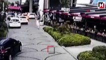 İstanbul'da yolda yürüyen kadına cip çarptı; kaza anı kamerada