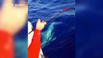 Adana'nın Yumurtalık ilçesinde balığa çıkan amatör balıkçı Cafer Özdemir'in oltasına, 60-70 santimetre boyundaki yavru köpek balığı takıldı.