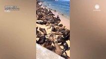 Officials were forced to close a Californian beach after sea lions took over the area. Footage filmed on Friday (Aug 23) shows hundreds of sea lions gathered on San Carlos Beach in Monterey.