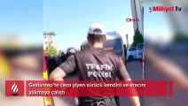 Adana'da eksik evrakı olduğu için trafik polisinin cezai işlem uyguladığı servis aracı sürücüsü, aracını ve kendini yakmaya çalışıp polise direndi.