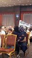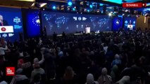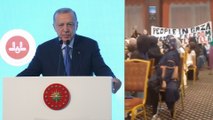Cumhurbaşkanı Erdoğan Diyanet'in programında konuşurken bir grup Gazze'ye destek çağrısıyla eylem yaptı. Güvenlik görevlileri eylemcileri dışarı çıkardı.