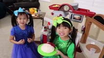 Jannie & Emma Pretend Play w/ Kitchen Restaurant Cooking Kids Toys