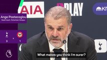 Ange Postecoglou went back and forth with a journalist in defence of Guglielmo Vicario's missed handball.
