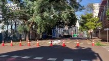 Caminhão baú arranca fios de telefonia e interdita a rua São Paulo em Cascavel