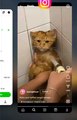 A cute cat sitting comfortably on a windowsill, bathed in soft sunlight. The cat has fluffy fur, large bright eyes, and a relaxed posture. The background shows a calm and cozy indoor setting with potted plants and a curtain gently swaying in the breeze.