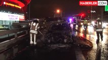 Sarıyer TEM Otoyolu'nda otomobil alev alev yandı
