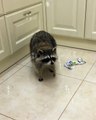 This baby raccoon loved to play with bubbles. As she stood on the table, she playfully tried to grab the bubbles falling from the sky but alas, they popped the moment she touched them