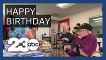 WATCH: Joe McGrath puts down one of his first bowls as a 100-year-old at special day for defence veterans at Commercial Club Albury.