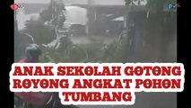 Anak Sekolah Gotong Royong Angkat Pohon Tumbang