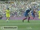 MATCH DU CHAMPIONNAT D'ESPAGNE ENTRE FC BARCELONE ET VILLARREAL. BUT POUR VILLARREAL DE LLORENTE. MATCH NUL ENTRE FC BARCELONE ET VILLARREAL. FC BARCELONE 3 VILLARREAL 3.