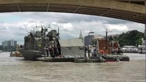 그물 제거 작업에 나설 크레인 바지선과 함께 민간 심해잠수사들은 예상보다 일찍 도착했습니다.