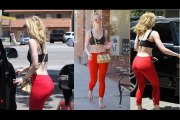 Elle Fanning looks on the bright side in red leggings and crop top