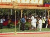 Oxen eat crops in Cambodian ritual for prediction of harvest