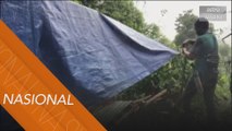 Penduduk Orang Asli suku kaum Temiar di Rancangan Pengumpulan Semula (RPS) Kuala Betis Blok A di Gua Musang, Kelantan bergotong-royong membina rumah bangsal di atas bukit sebagai tempat pemindahan sementara ketika musim tengkujuh.