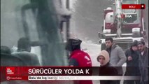 Kar yağışının etkili olduğu Bolu’da Gölcük Tabiat Parkı’na gitmek isteyen yurttaşlar yolda kaldı. Kış lastiği takmayan sürücüler yolda ilerlemekte zorlandı.