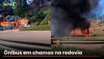 Ônibus clandestino pega fogo e desce desgovernado na Fernão Dias