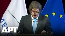 Argentine President Javier Milei calls for on right-wing political groups to "stand together" at the conservative CPAC summit in Buenos Aires. "We must stand together and establish channels of cooperation around the world. We could call ourselves a right-wing international, a network of mutual assistance," Milei tells hundreds of people who cheer him on in Buenos Aires.