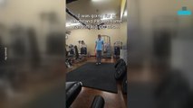 The clip captures Lucy attempting a handstand in the kitchen. While she impressively manages to lift her feet off the ground, her balance quickly betrays her, putting an abrupt end to her kitchen workout ambitions.