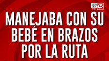 Iba en moto con su nena en brazos, sin protección y terminó chocando