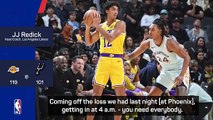 Lakers coach JJ Redick praised Anthony Davis for his defensive performance in their close win over Sacramento.