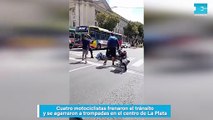 Cuatro motociclistas frenaron el tránsito y se agarraron a trompadas en el centro de La Plata