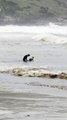 Cachorro chama atenção ao pegar onda no Farol de Santa Marta